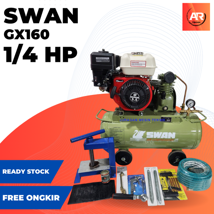 KOMPRESOR ANGIN BENSIN KOMPRESOR ANGIN SWAN 1/4 HP ENGINE PENGGERAK BENSIN GX160 / KOMPRESOR LISTRIK 2PK / KOMPRESOR 1PK