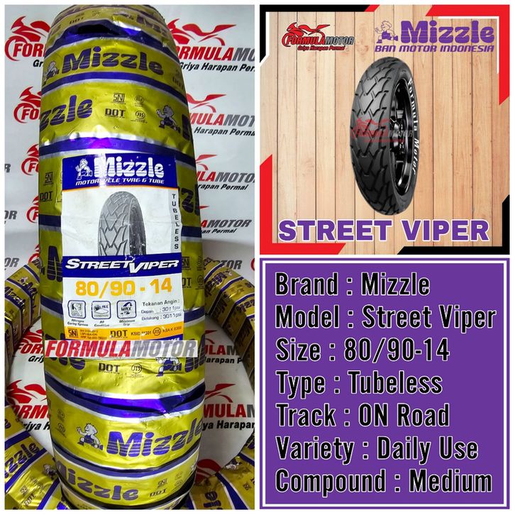 80/90-14 Ban Mizzle Street Viper Tubeless - Ban Depan Beat / Vario / Nex-2 / Spacy / Genio / Address / Scoopy Old - Ban