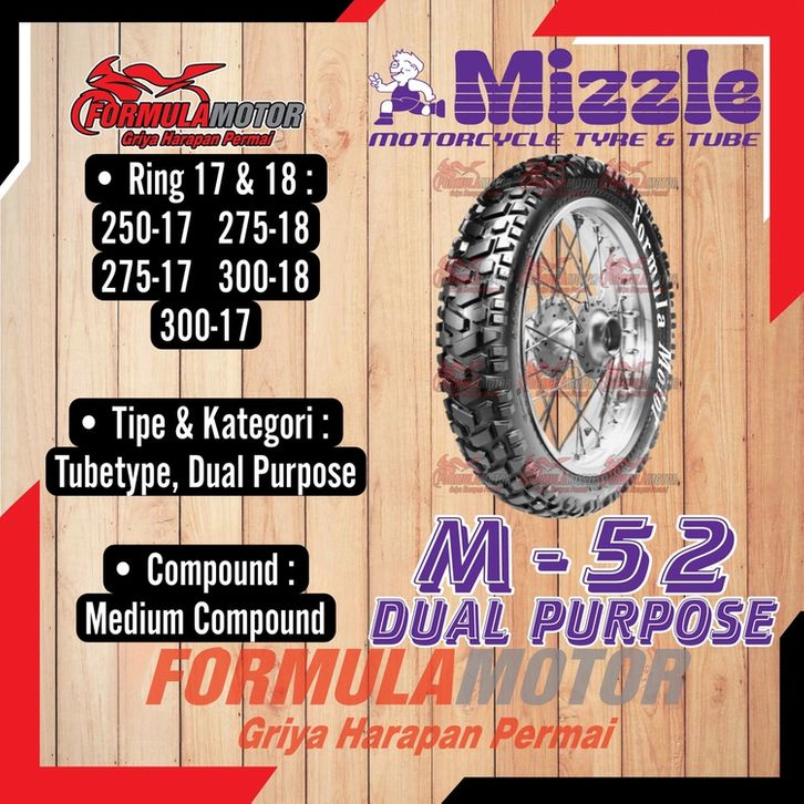 Ban Mizzle M 52 Ring 14, 17, 18 (80/90-14)(90/90-14)(250-17)(275-17)(300-17)(275-18)(300-18) Tubetype (Pilih Ukuran)
