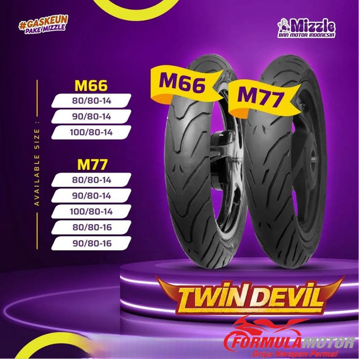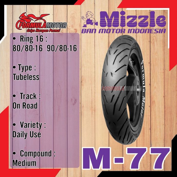 Mizzle M-77 Ring 14&16 (80/80-14) (90/80-14) (100/80-14) (80/80-16) (90/80-16) Tubeless (Pilih Ukuran) - Ban Motor Matic