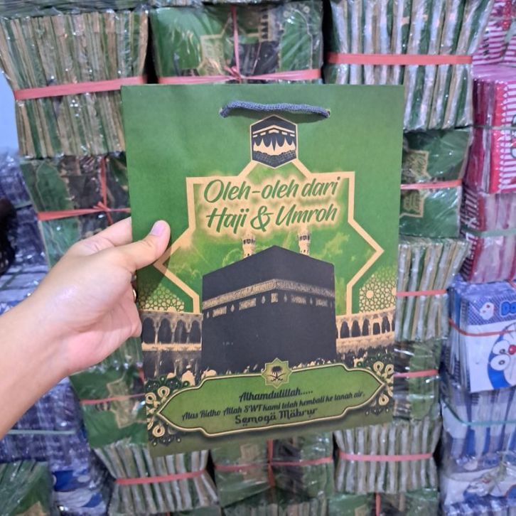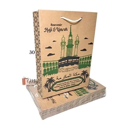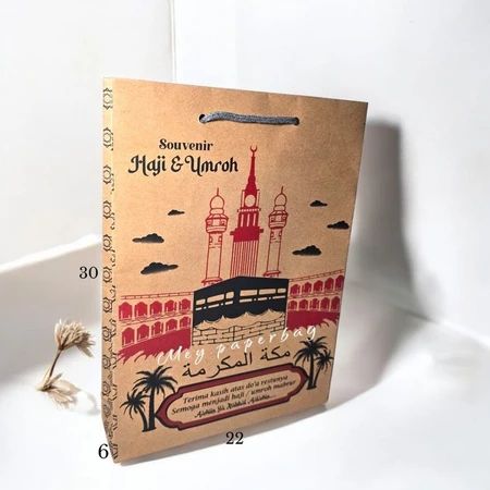 Paper bag kertas syukuran souvenir oleh oleh haji dan umroh 22X30cm Bingkisan haji terbaru