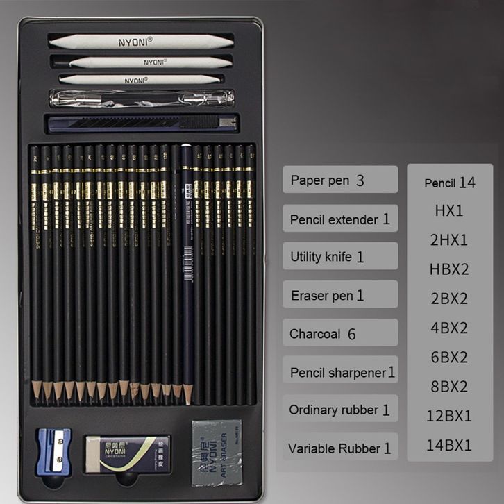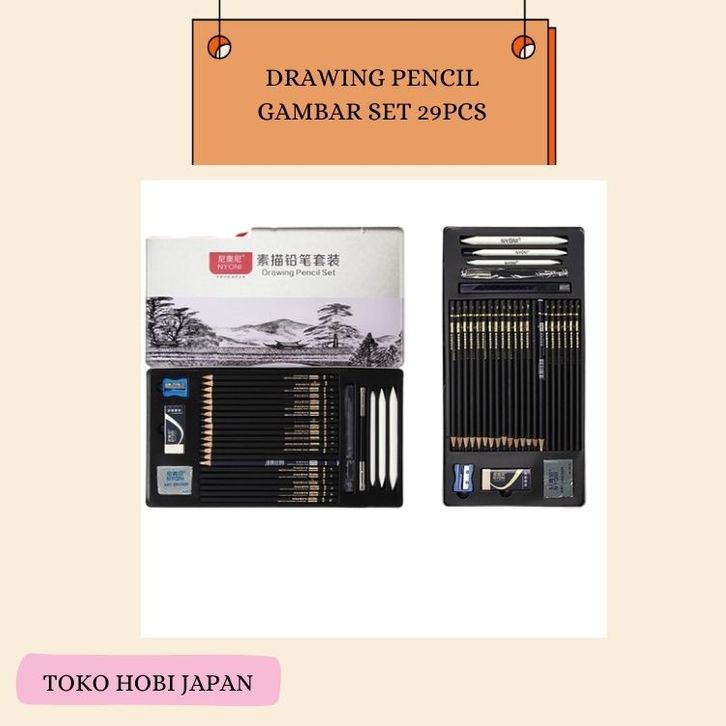 DRAWING PENCIL GAMBAR SET 29PCS METAL TIN BOX PENSIL GAMBAR LUKIS SKETSA LENGKAP TOKO HOBI JAPAN