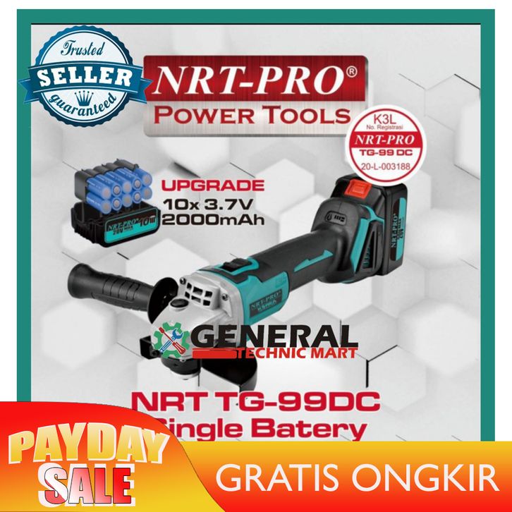 [Mall] CICILAN/ BRUSHLESS NRT PRO TG-99 DC TG-99DC 1 BATRE CORDLESS GERINDA TANGAN 4"