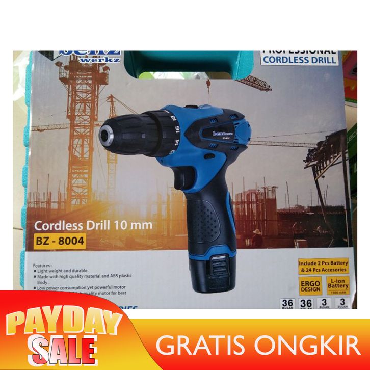 CICILAN/ IMPACT DRILL MESIN BOR BETON BESI KAYU BATRAI CORDLESS 10MM. BENZ BZ 8004