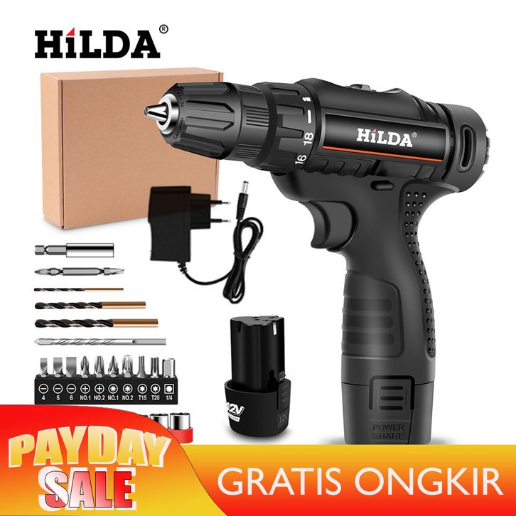 [Mall] HILDA BOR BATERAI MESIN BOR LISTRIK TANPA KABEL IMPACT DRILL CORDLESS DRILL KOPER 2 BATERAI