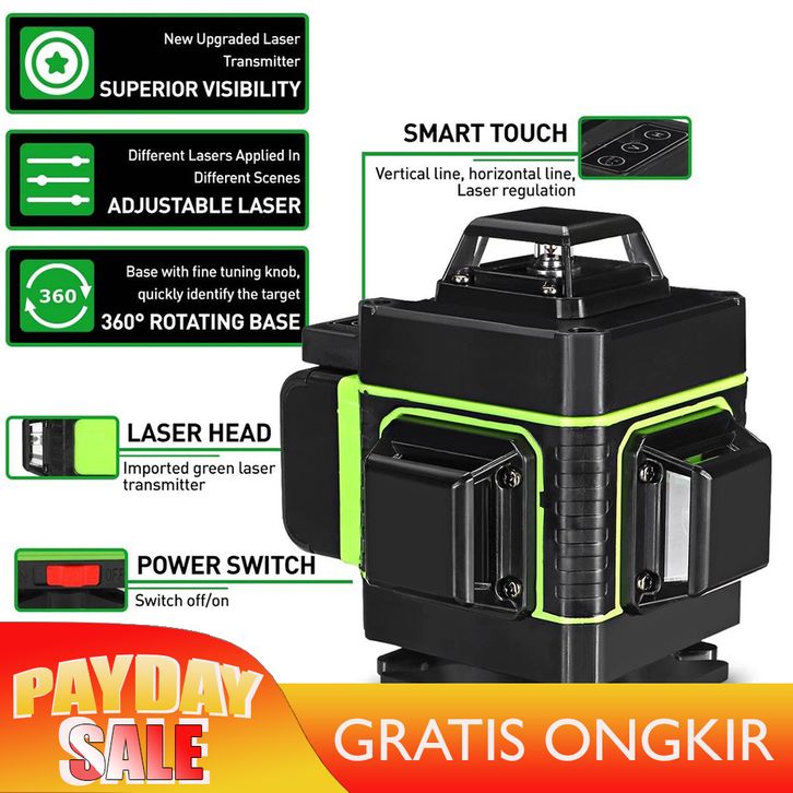 CICILAN/ HILDA LASER LEVEL 16 LINES MESIN SELF LEVELING LASER SINAR HIJAU DENGAN REMOT LASER SIKU WATERPASS DIGITAL