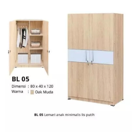LEMARI PAKAIAN GANTUNG KAYU ANAK 2 PINTU + KUNCI BABY LOCKER MINIMALIS