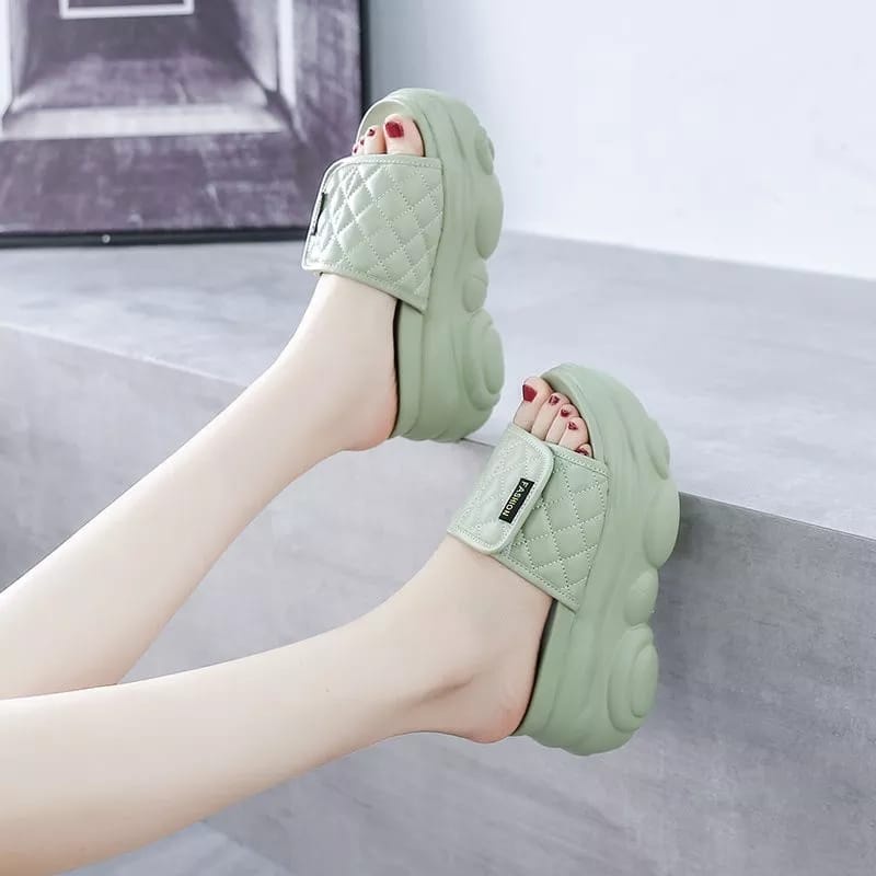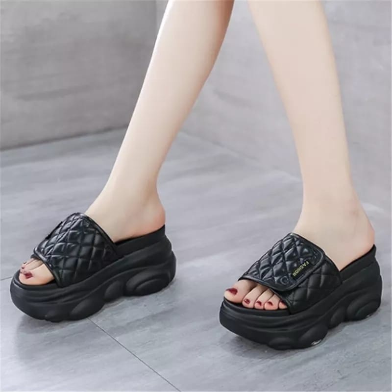 DM-SHOP Sendal Wedges Slip On Karakter Sandal Wanita Kekinian - Sendal Wedges Import - Sandal Wanita Import