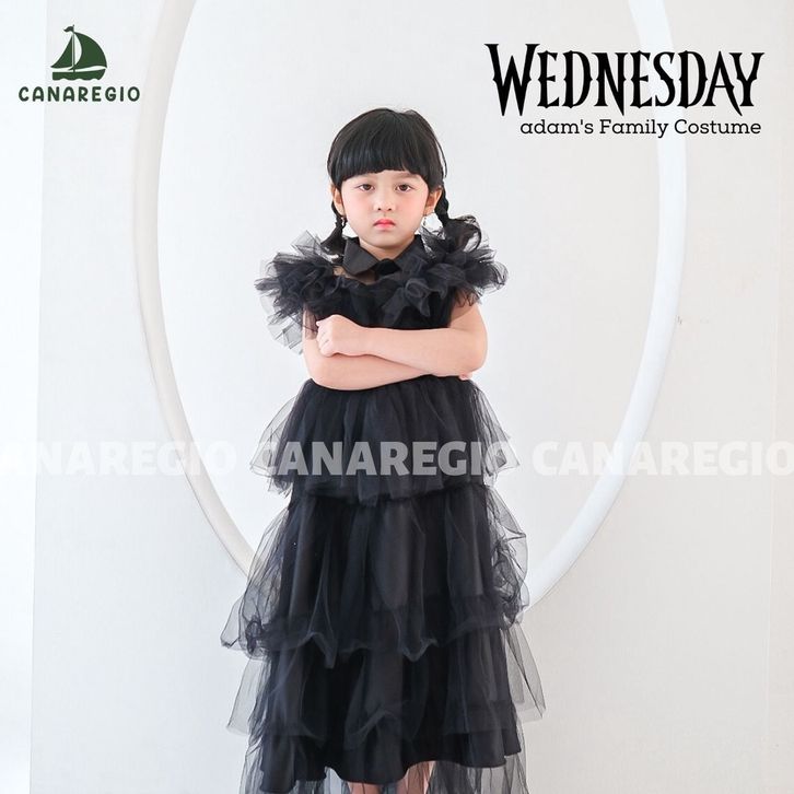 PAKAIAN ANAK ADAM'S FAMILY WEDNESDAY DRESS KOSTUM ANAK TILA HITAM COSPLAY PROM ADDAMS DRESS HITAM BY CANAREGIO KIDS