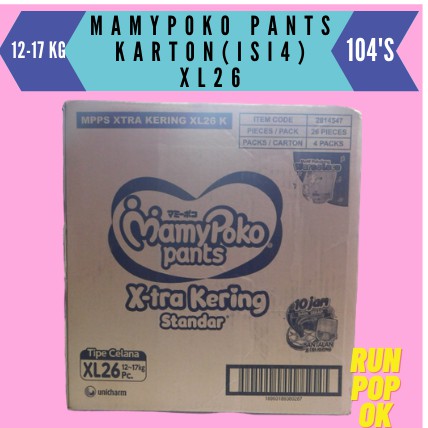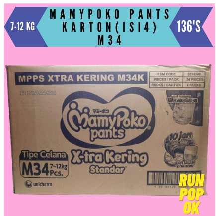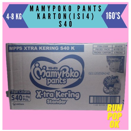 MAMYPOKO 1 KARTON ISI 4 BALL S38/M32/L28/XL26 POPOK DIAPERS BABY