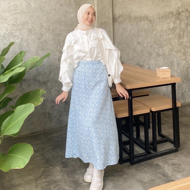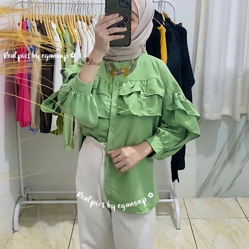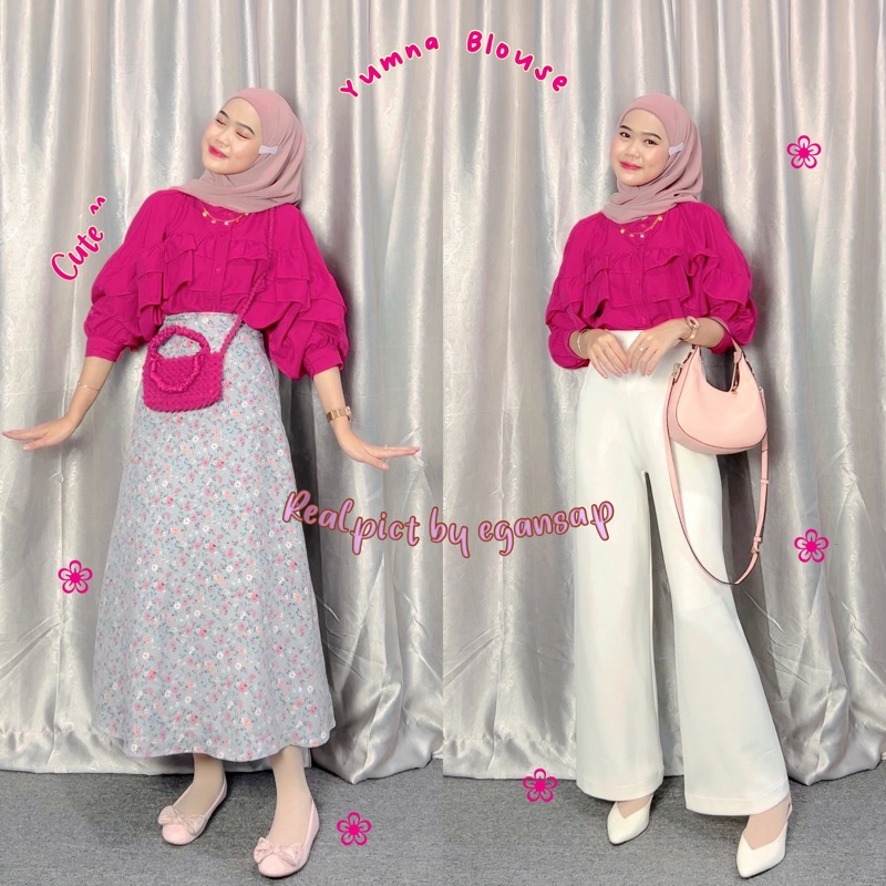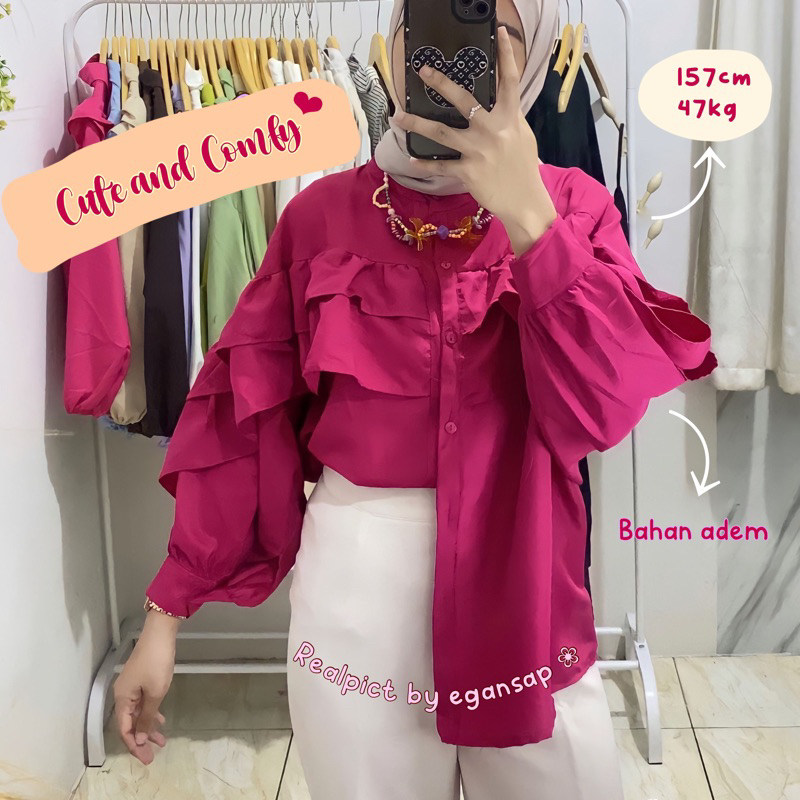 Blouse Rimpel Rufle Korean Style Baju Atasan Wanita Kekinian Fashion Muslim Fuschia Kondangan Dinner Party Nata