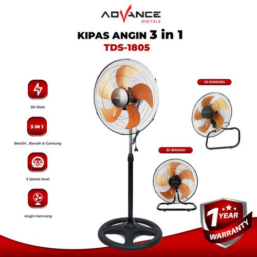 Advance TDS-1805 Kipas Angin 3in1 Stand/Desk/Wall Kipas Tornado