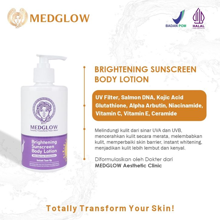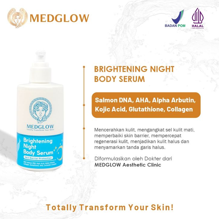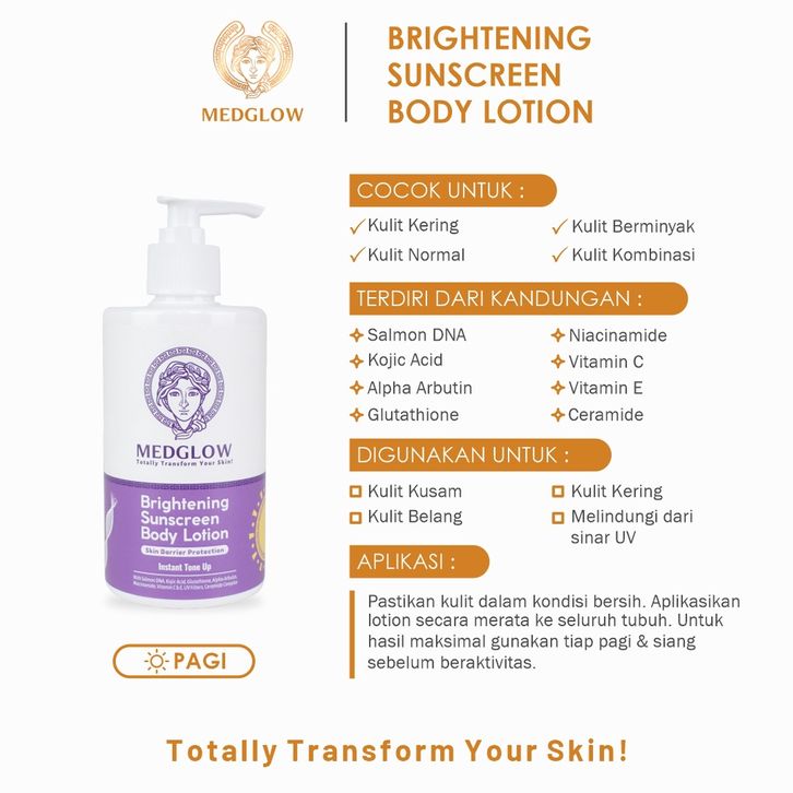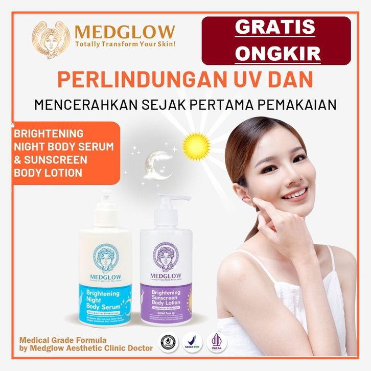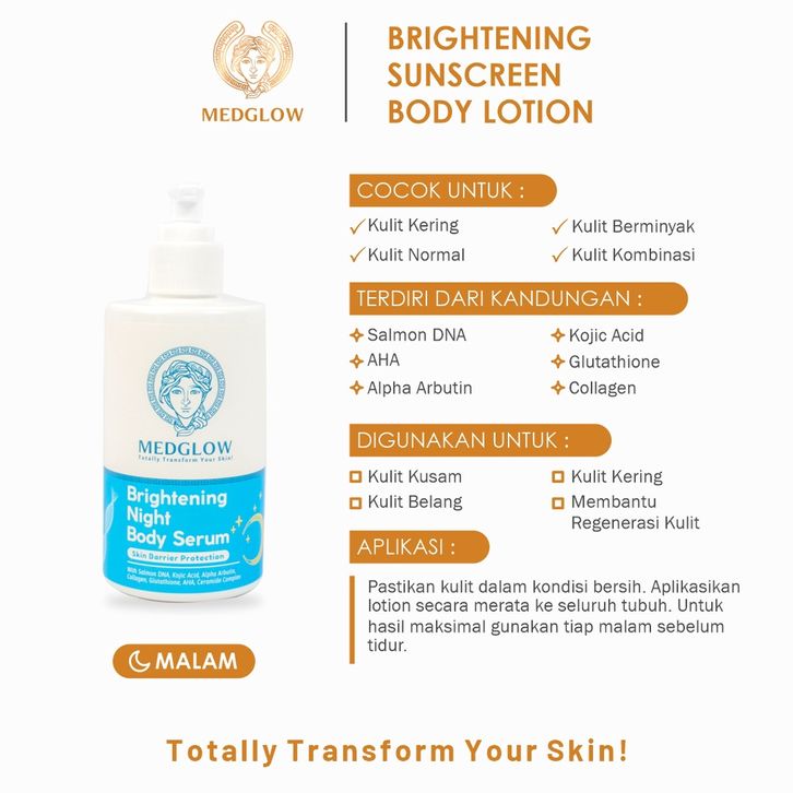 MEDGLOW CLINIC Lotion Pemutih Instant Whitening Tone Up Salmon DNA + Lotion Pemutih Malam Salmon DNA Alpha Arbutin AHA K