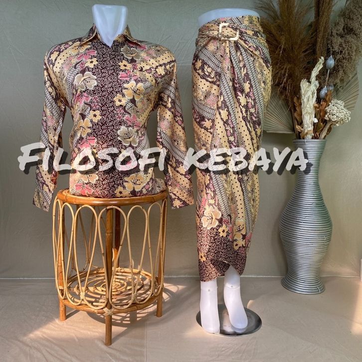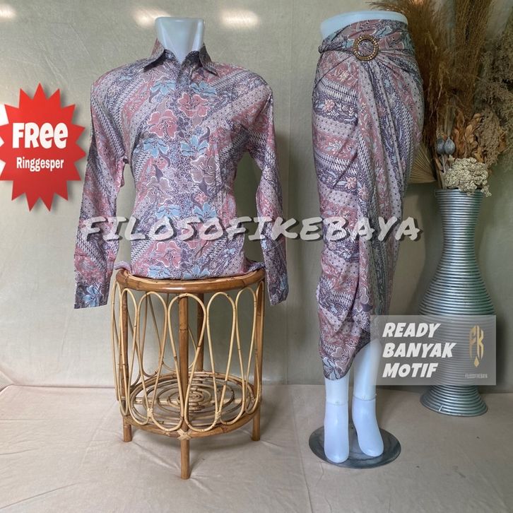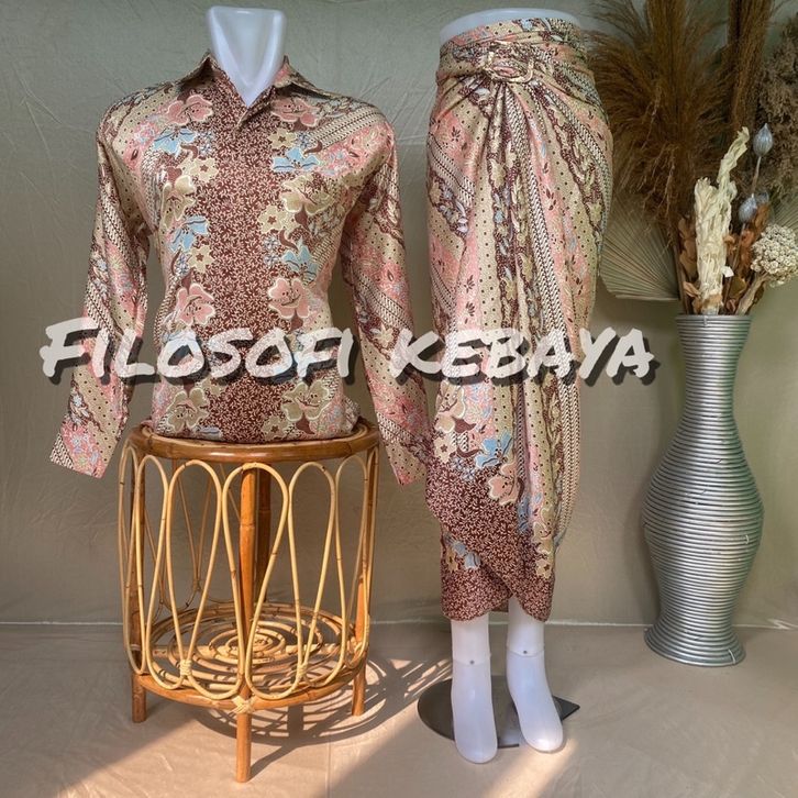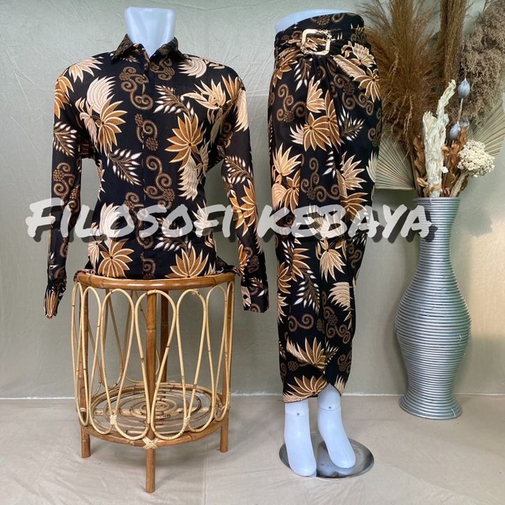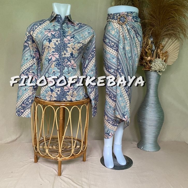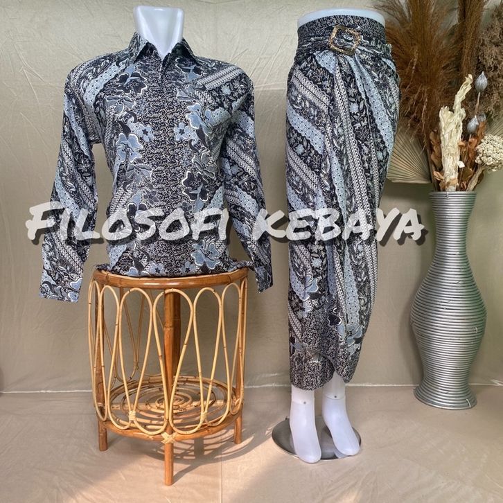 BATIK COUPLE PASANGAN KEMEJA+ROK LILIT BATIK SET BAJU BATIK LENGAN PANJANG