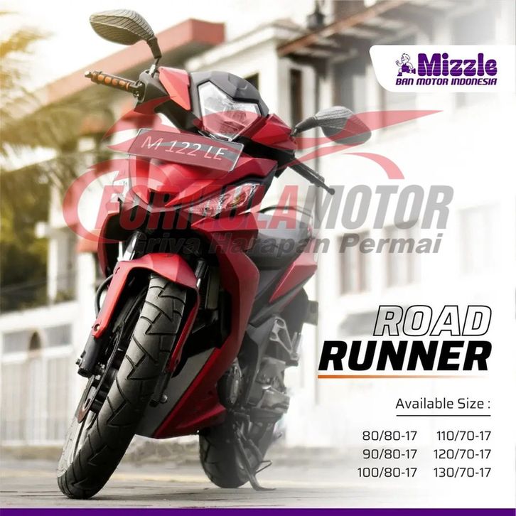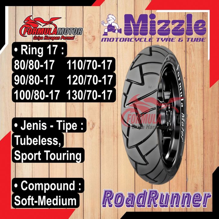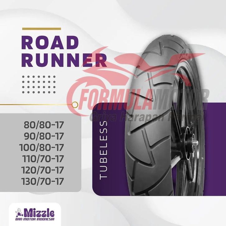 Mizzle Road Runner Ring 17 (80/80-17) (90/80-17) (100/80-17) (110/70-17) (120/70-17) (130/70-17) Tubeless -(Pilih Ukuran