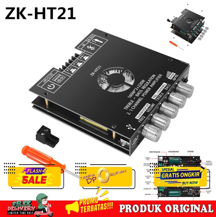 PROMO/ ZK-HT21 AMPLIFIER 2.1 CHANNEL BLUETOOTH MODUL DAYA DIGITAL SUBWOOFER NADA TINGGI DAN RENDAH 160W * 2 + 220W