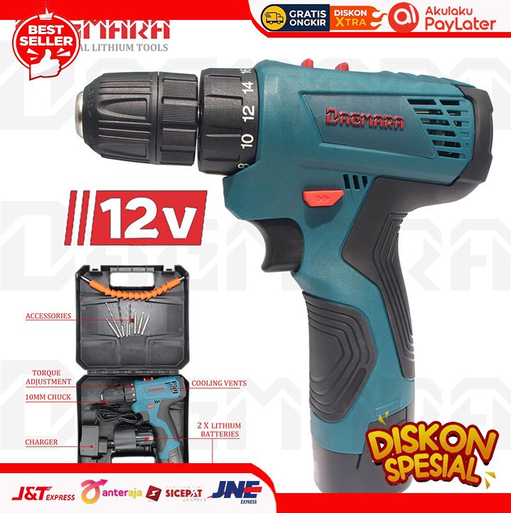 DAGMARA 12V CORDLESS DRILL SET MESIN BOR TANGAN TANPA KABEL