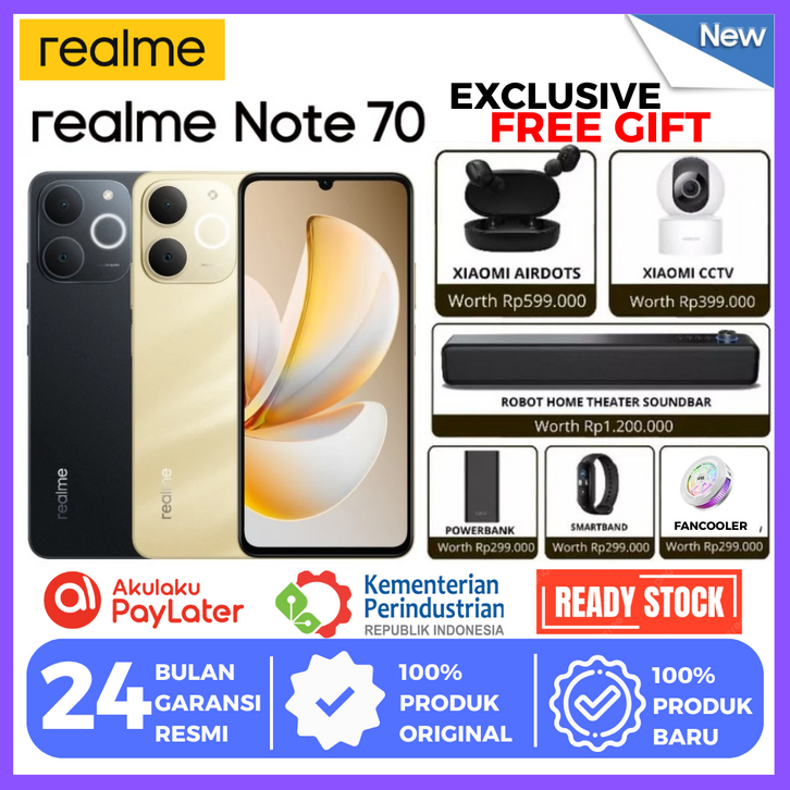 Realme Note 70 4GB+8GB*|128GB (6300mAh Battery - Military Grade Shock Resistance - Garansi Resmi Realme Indonesia