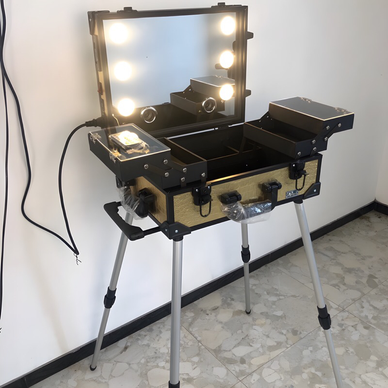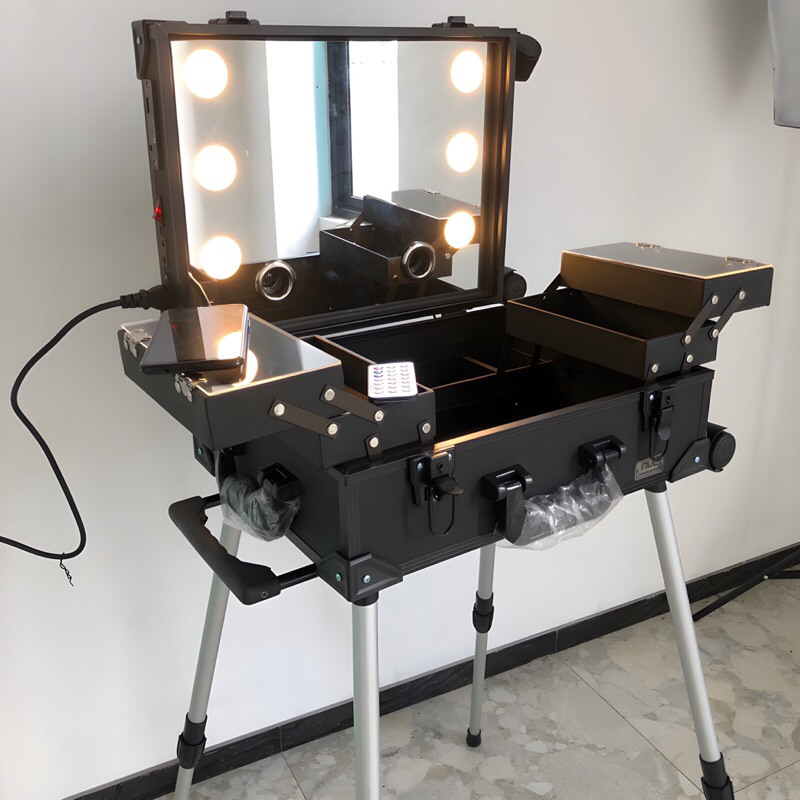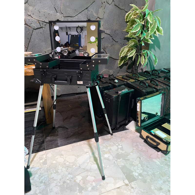 Beautycase + speaker blutut+stand kaki.full cermin 6lampu