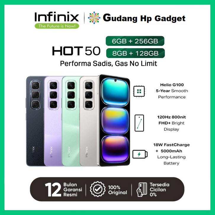 Top Seller Cicilan DP 0 | INFINIX HOT 50 8GB/128GB GARANSI RESMI Mediatek Helio G100 NFC Type 5000 mAh Triple 50 MP