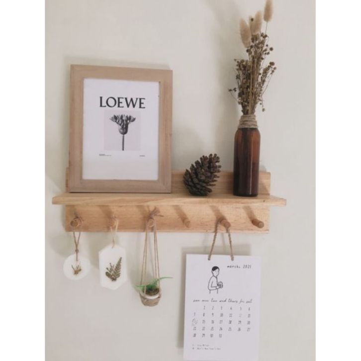 PERLENGKAPAN RUMAH TANGGA DAPUR rak dinding rak tempel tempat gantungan kunci buku baju rak kayu serbaguna key holder