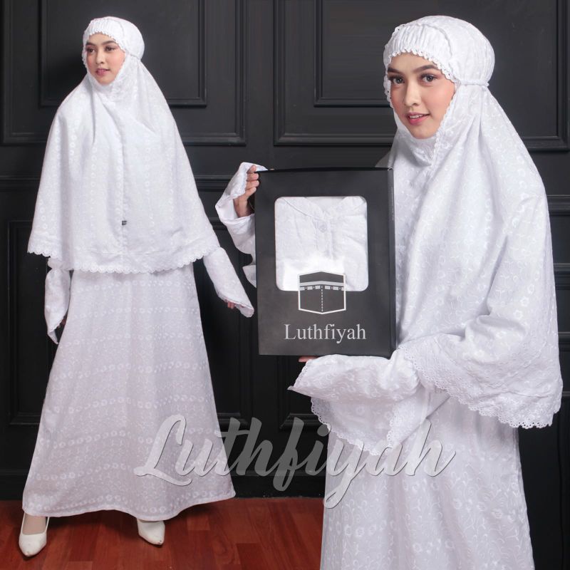 SATU SET BAJU IHRAM WANITA / STELAN GAMIS PUTIH UMROH KATUN JEPANG / STELAN GAMIS BERGO SARUNG TANGAN
