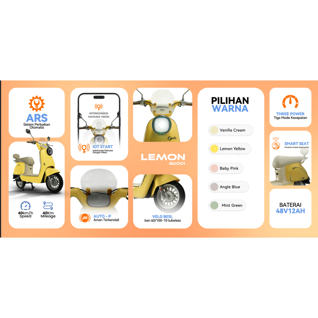 SEPEDA LISTRIK NEW GODA LEMON GD 001 E BIKE SEPEDAH MINI DEWASA ANAK LAKI LAKI PEREMPUAN MURAH TANPA DP BERGARANSI RESMI