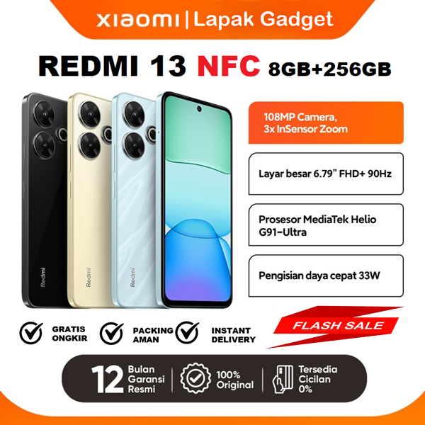 XIAOMI REDMI 13 NFC 8GB+256GB Helio G91-Ultra Kamera utama 108MP Pengisian cepat 33W | REDMI 13 8/256GB NFC