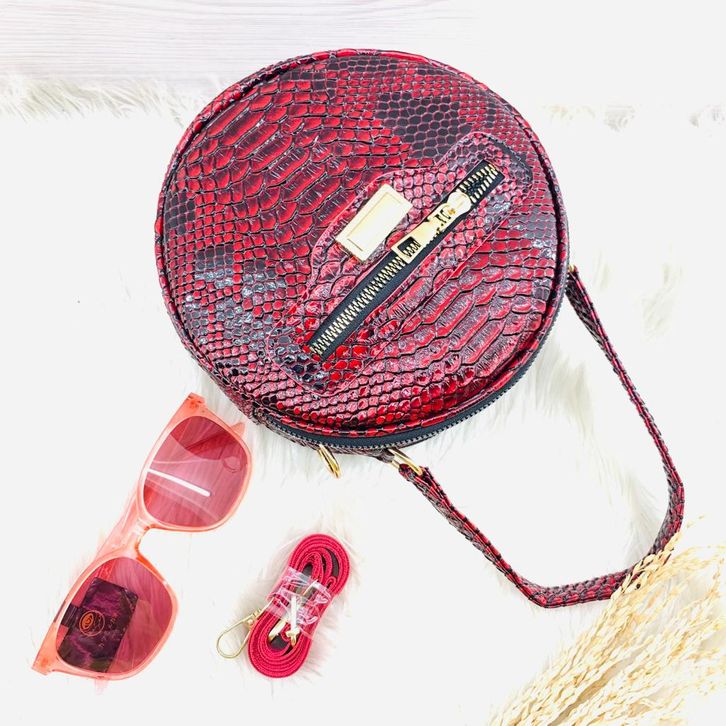 tas selempang wanita bulat 3ruang resleting tas bahu jinjing kulit ular sintetis model kekinian tas terlaris kulit piton