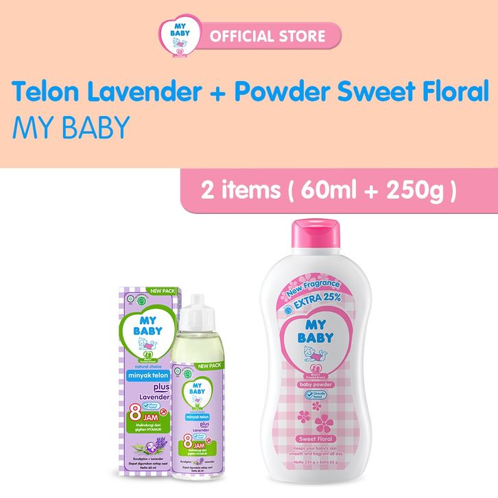 PAKET MY BABY MINYAK TELON PLUS LAVENDER 60ML & MY BABY POWDER 250G SWEET FLORAL