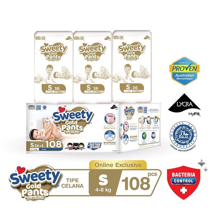 Pampers Bayi Popok Celana Sweety Gold Pants 1 Dus S 36 Pcs Isi 3 Pack