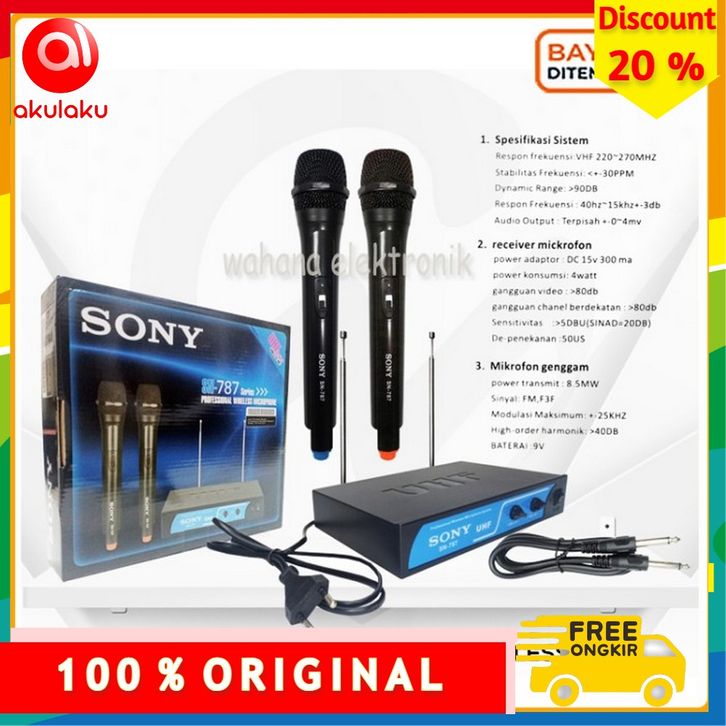 Spiker Aktif Blutut Microphone Mic Wireless Sony SN787 - Sony SN 787 Mik Double Karaoke