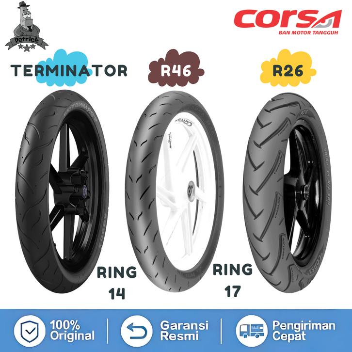 Ban Corsa Terminator R46 R26 Ring 17 Ring 14 R99 Platinum R26 V22 SS18 012 Sepasang Motor Beat Bebek Vario Tubeless