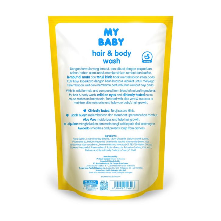 PROMO PERAWATAN BAYI MY BABY HAIR & BODY WASH ALOEVERA & AVOCADO REFILL [400 ML / 2 PCS]- BUNDLE PACK TERMURAH
