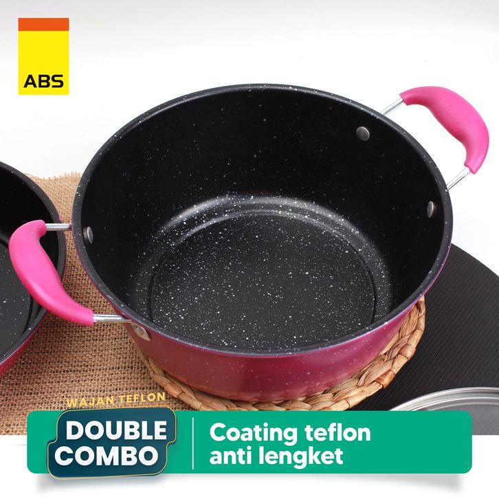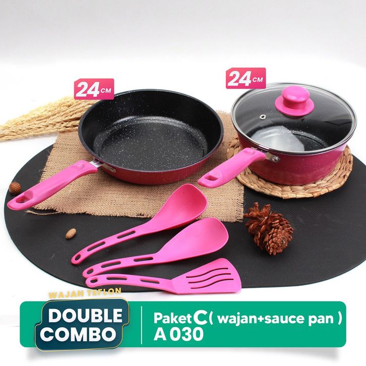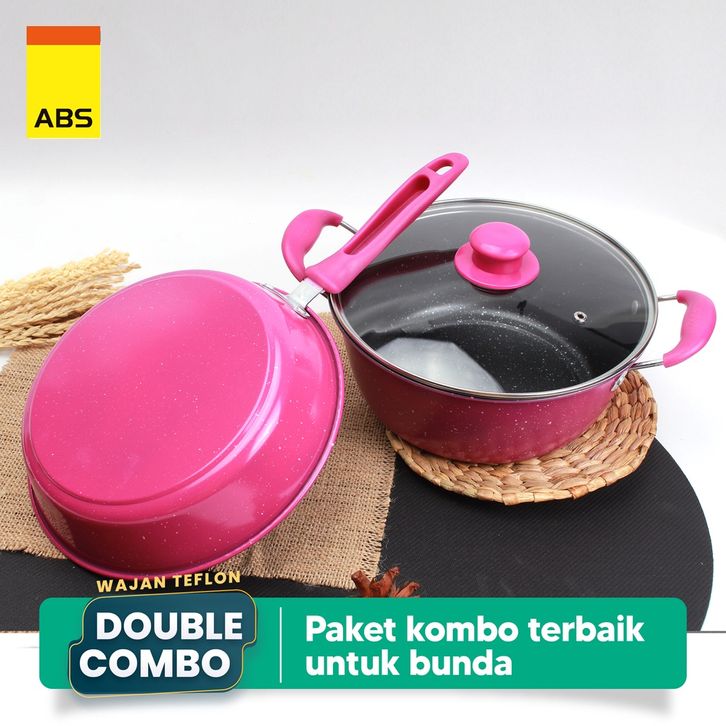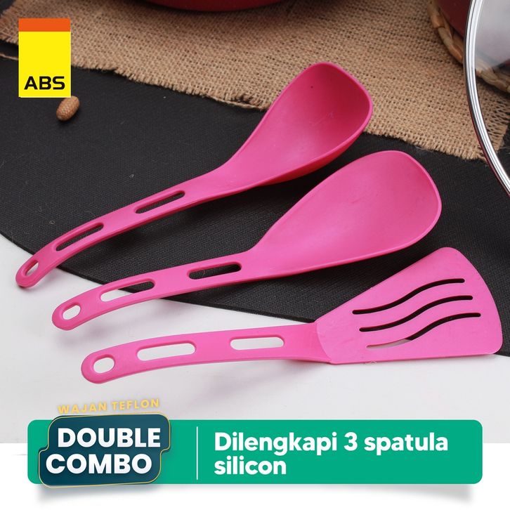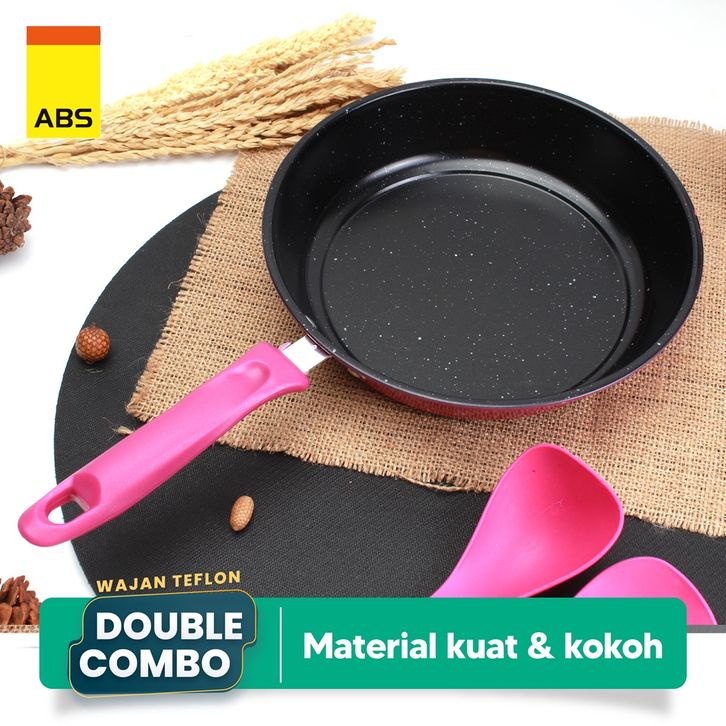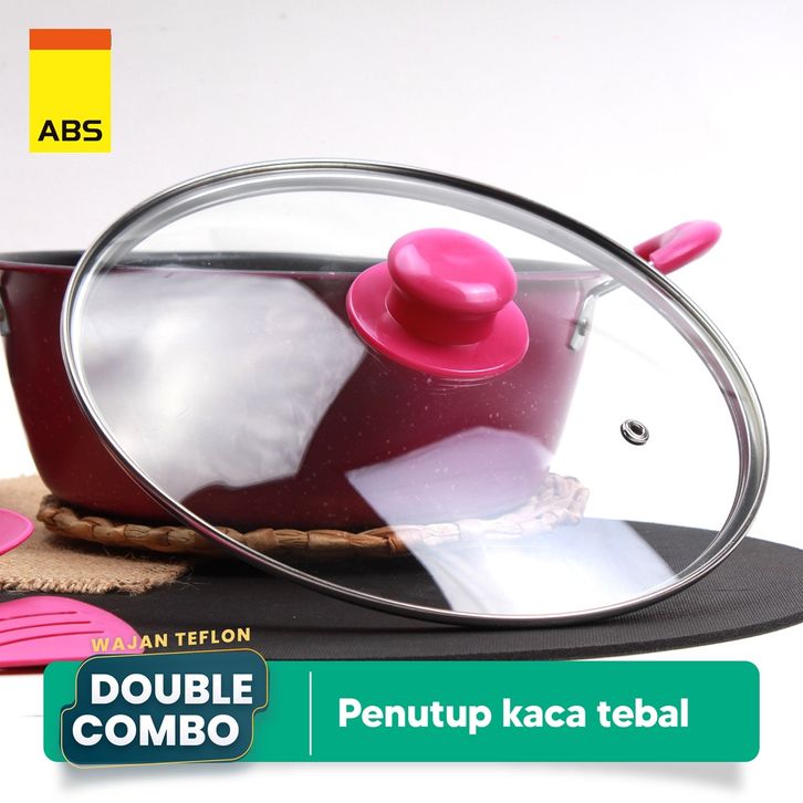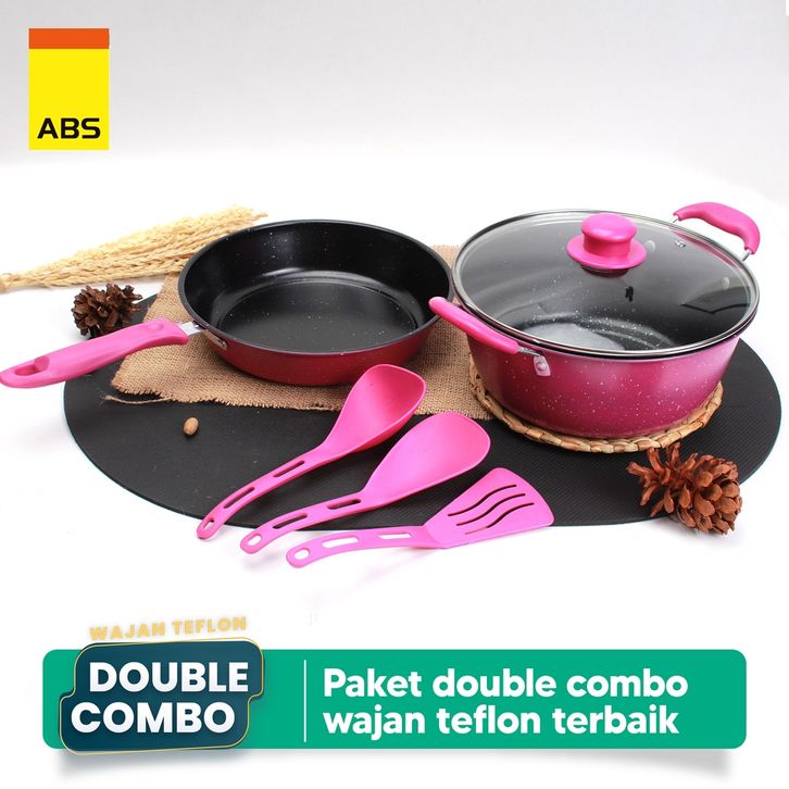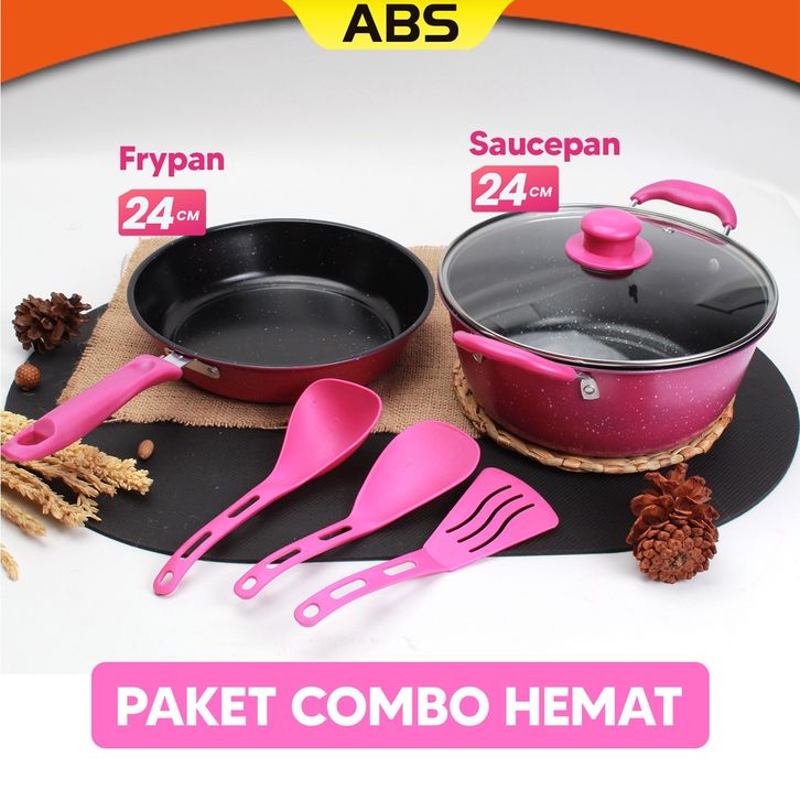 ABS Panci / Wajan Telfon Anti Lengket dengan Tutup Kaca 5 pcs / Panci Penggorengan Satu Set Dengan Spatula / Alat Masak