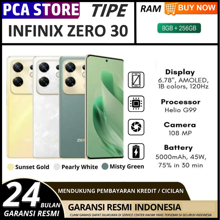Hp INFINIX ZERO 30 RAM 8/256GB GARANSI RESMI | Mediatek MT8781 Helio G99 | MAIN CAMERA Triple 108MP | Li-Po 5000 mAh