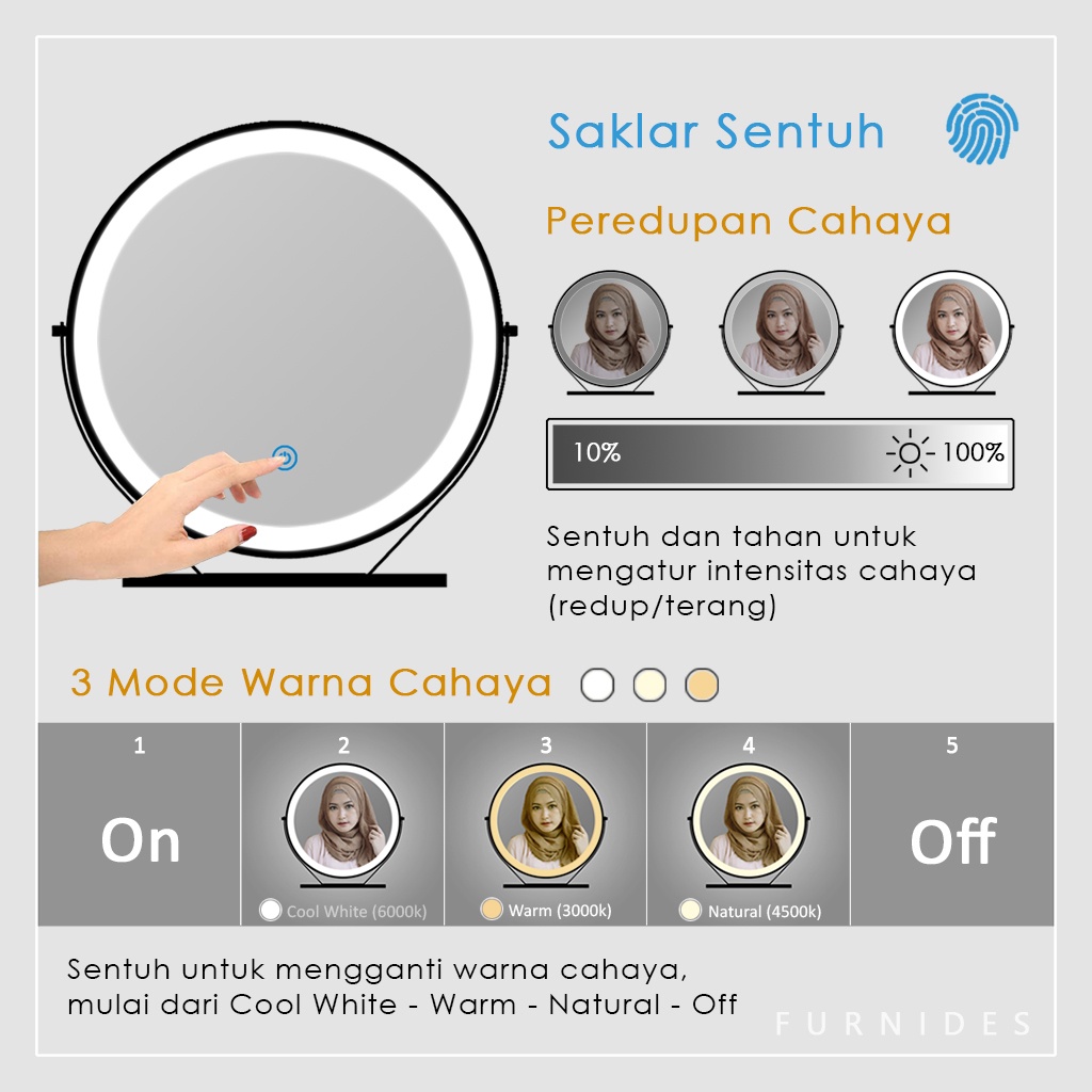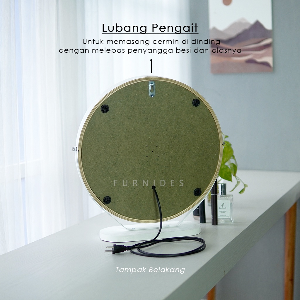 CERMIN RIAS BULAT | MAKE UP DUDUK LAMPU LED DIEMETER 60 CM