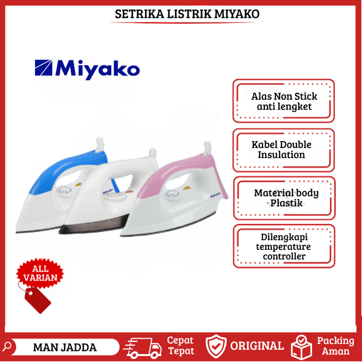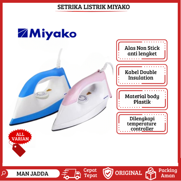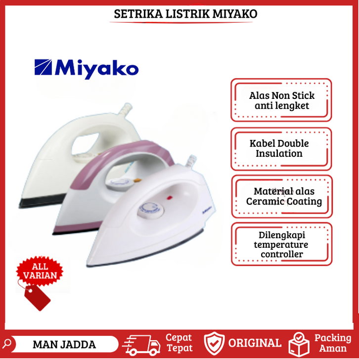 SETRIKA MIYAKO EI1000MPK EI1008BL EI2000B EI1009MWH BODY PLASTIK CERAMIC ANTI LENGKET GOSOKAN BAJU TERLARIS MURAH