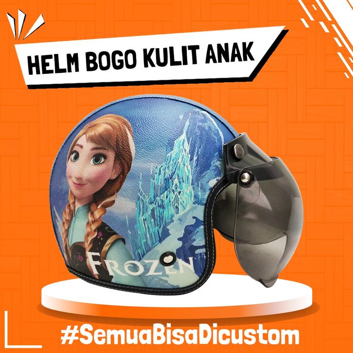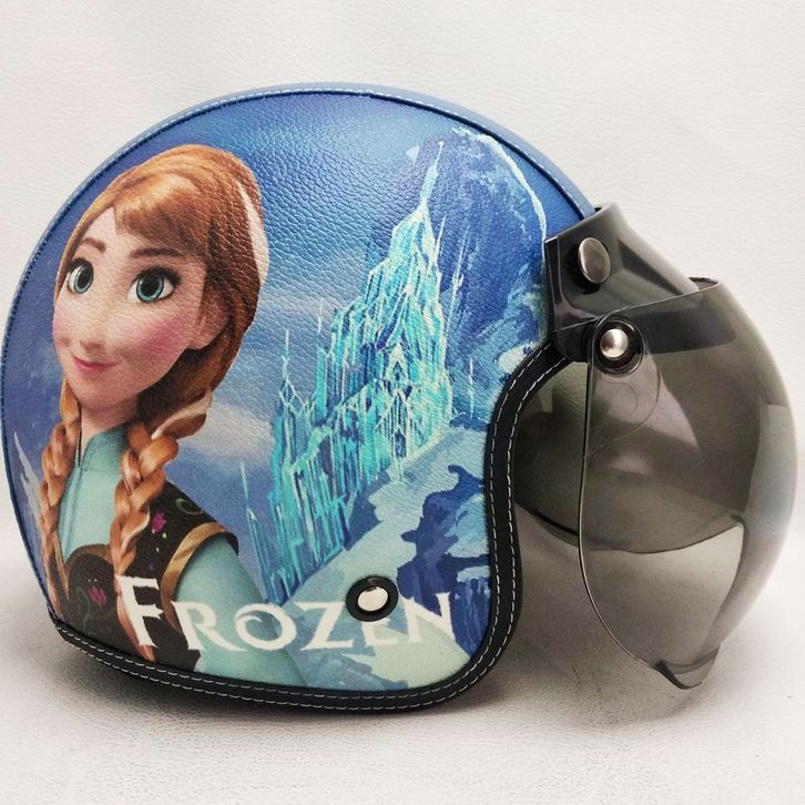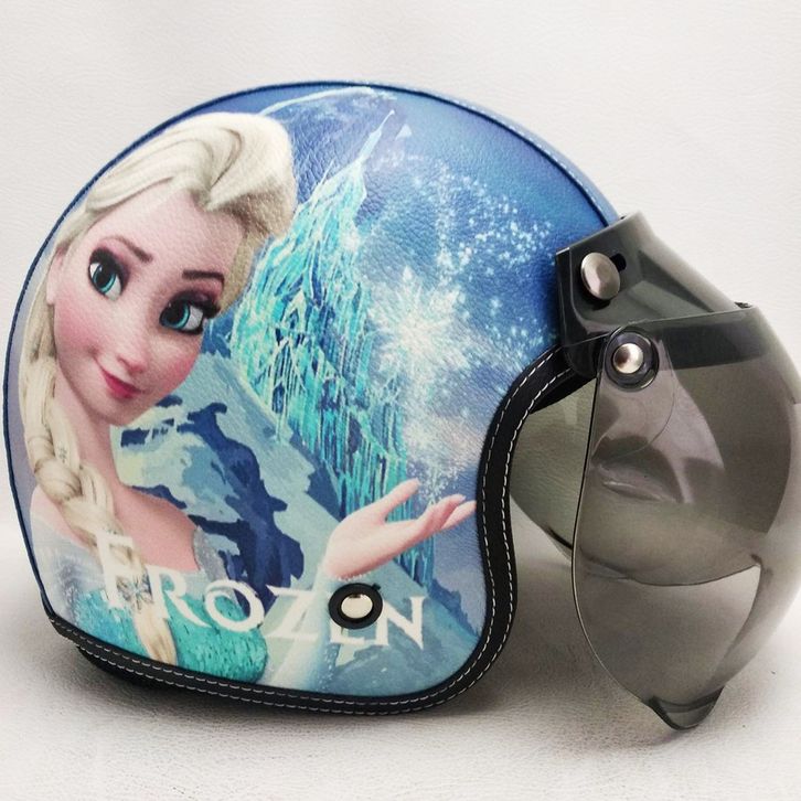 Helm Anak Retro Kulit Motif Frozen Blue Ukuran Kid dan Junior Hallface