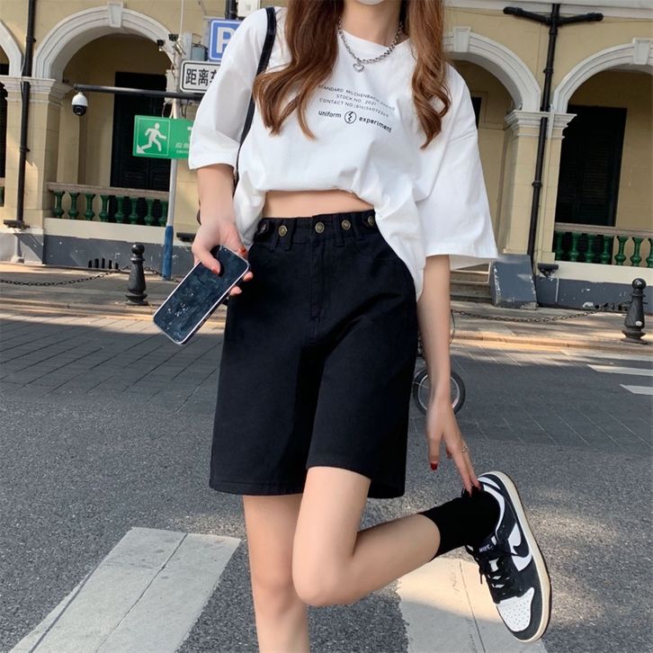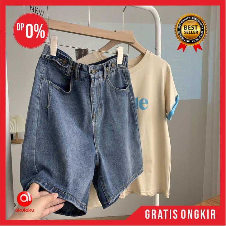 PROMO Korea Highwaist Loose Celana Jeans Pendek Wanita Import (Realpict) TERLARIS