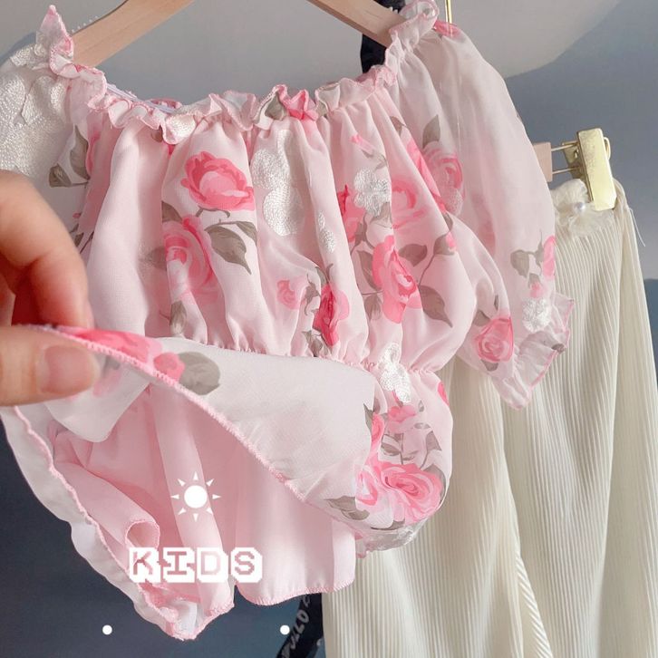 SETELAN ANAK PEREMPUAN IMPORT SETELAN ANAK CEWEK KOREA BS-411 STELAN ANAK CEWEK VIRAL PINK FLORA SIZE 100-140