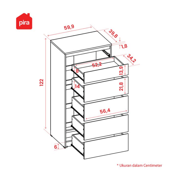 PIRA METROPOLIS OX - HIRO CH5 Lemari Laci 5 Susun