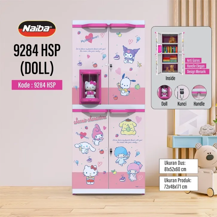 Jumbo Lemari Pakaian Plastik Naiba Msc Doll Boneka - 9284 Lemari Baju Doraemon Hello Kitty
