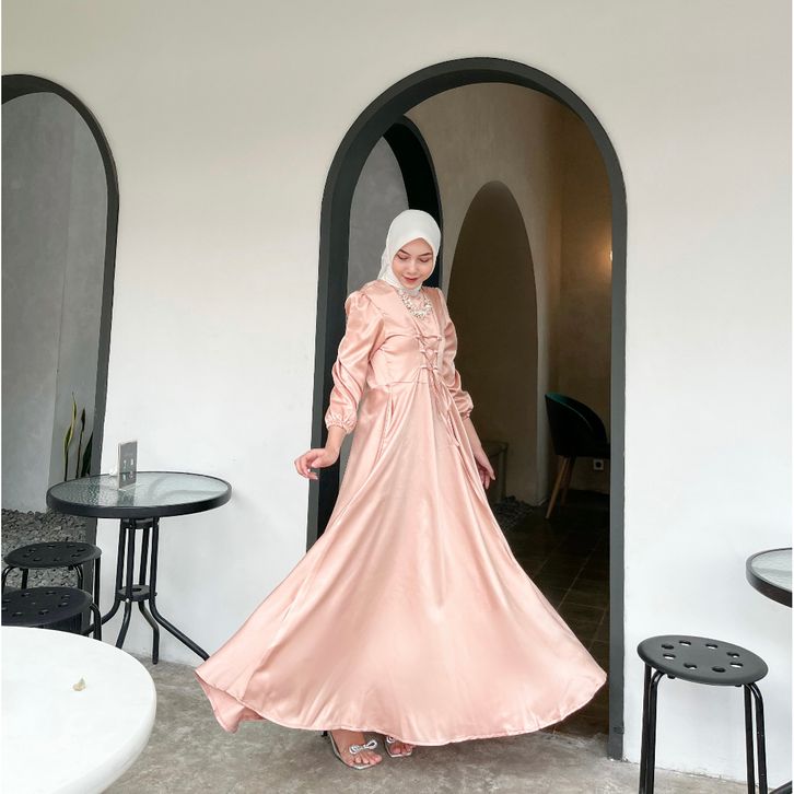 GAMIS SATIN WANITA REMAJA DEWASA DRESS KONDANGAN BRIDESMAID KOREAN STYLE GAMIS PESTA MEWAH ELEGAN DRESS SLIK PREMIUM