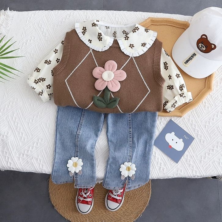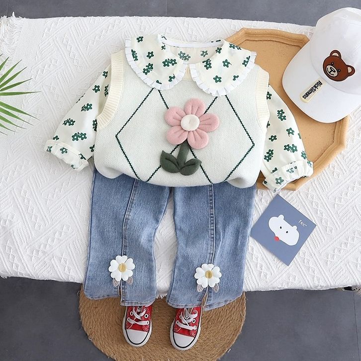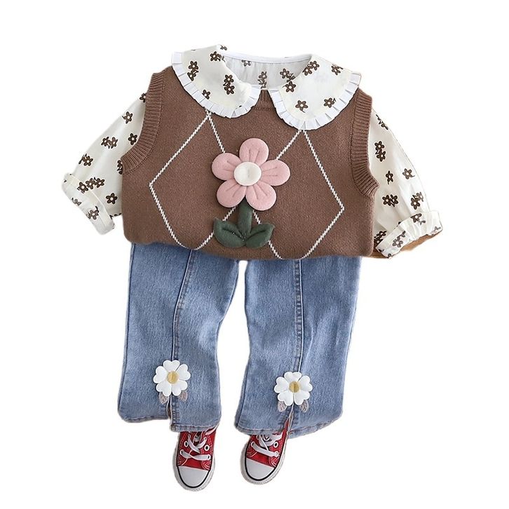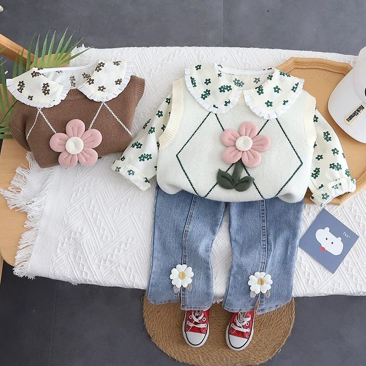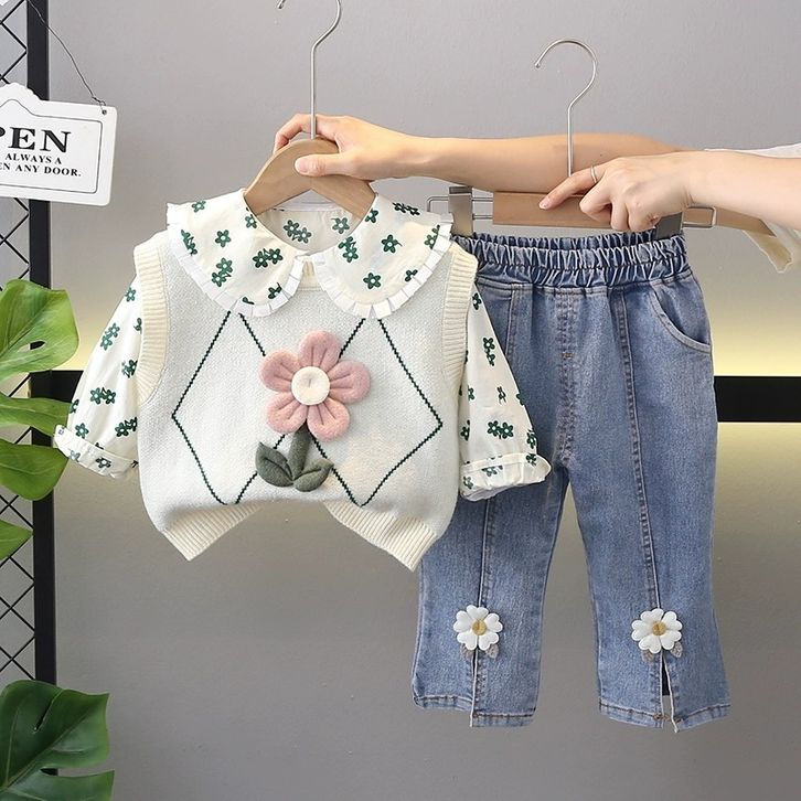 Setelan Anak Perempuan Baru Setelan Jeans Atasan Rajut Lengan Panjang Gaya Korea Style Baju Lebaran Anak Cewek 1-4 Tahun