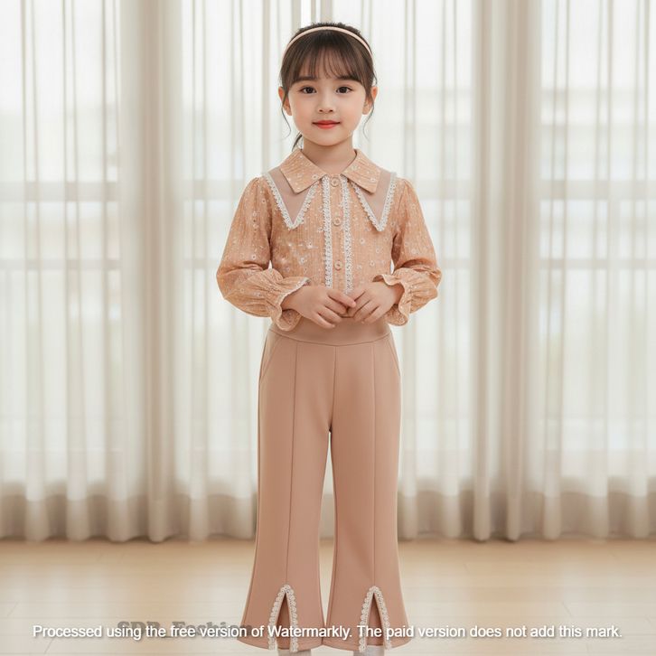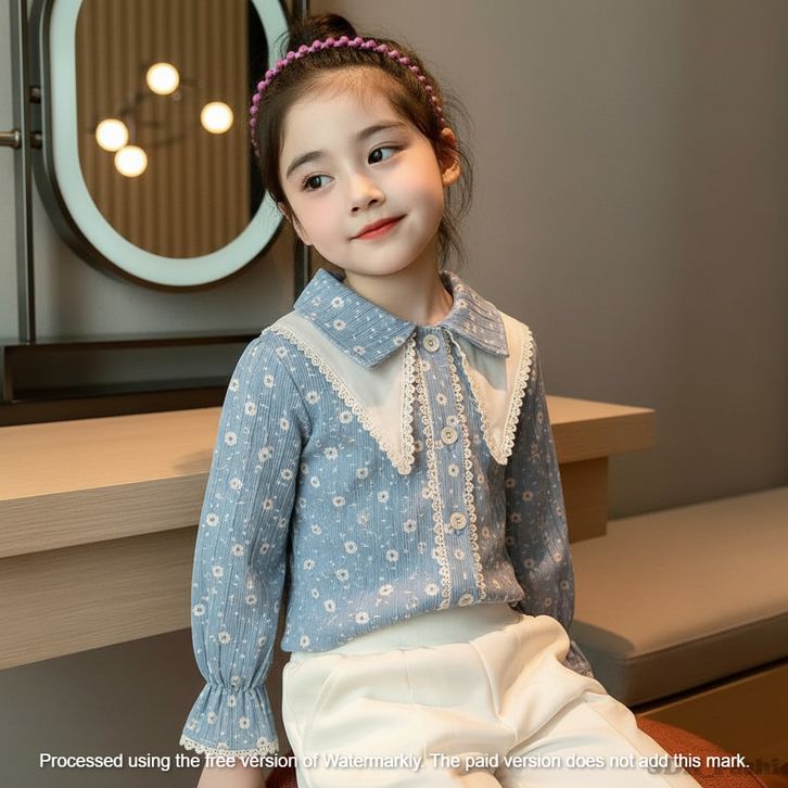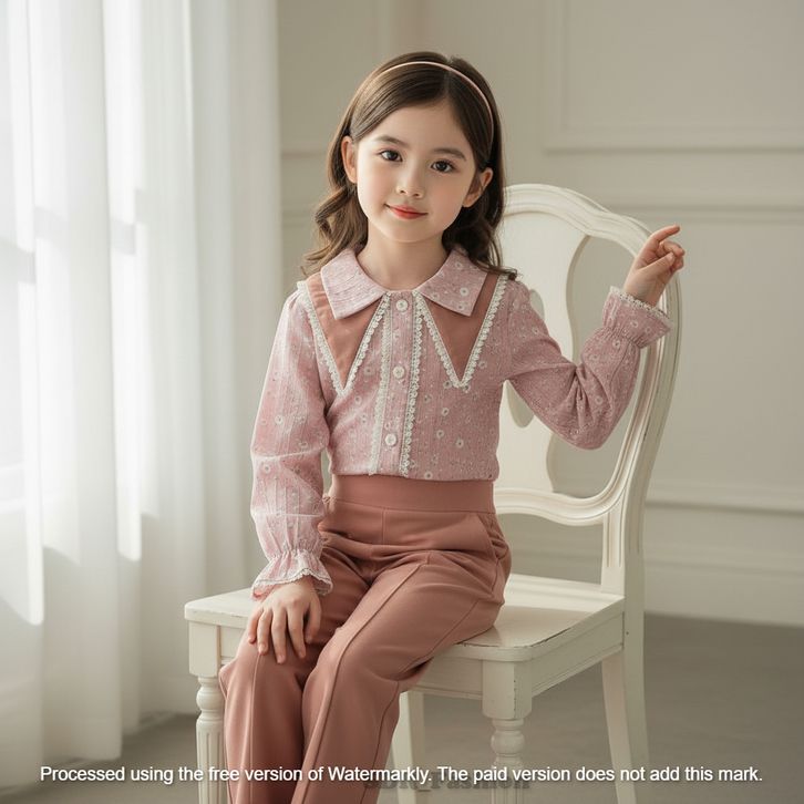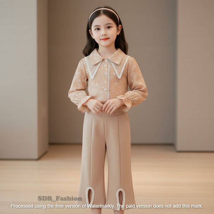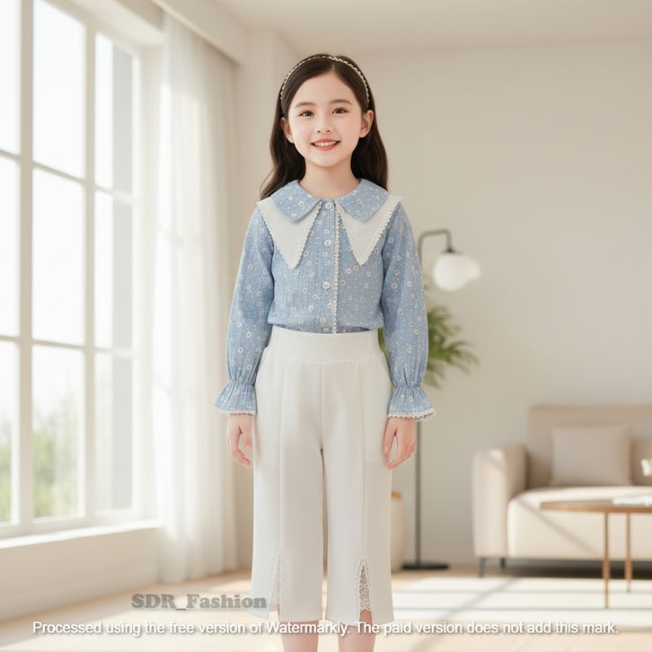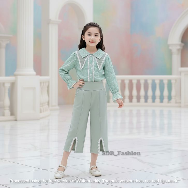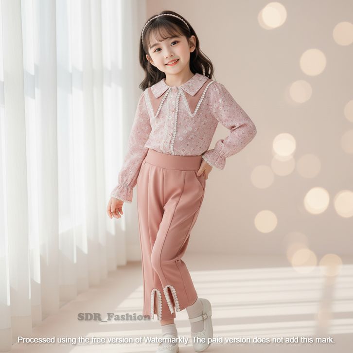 Setelan Anak Korea Vintage Premium Blus motif bunga & kerah Peter Pan celana kulot highwaist desain unik usia 1-12 tahun