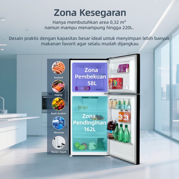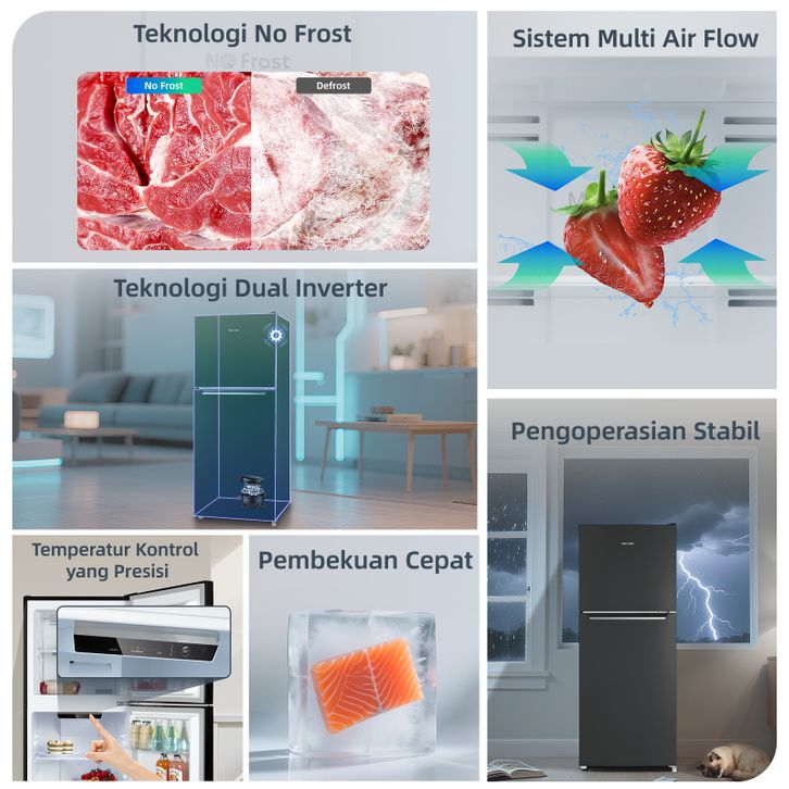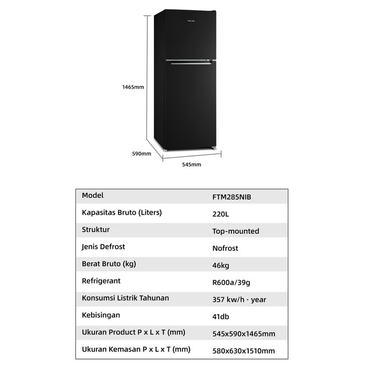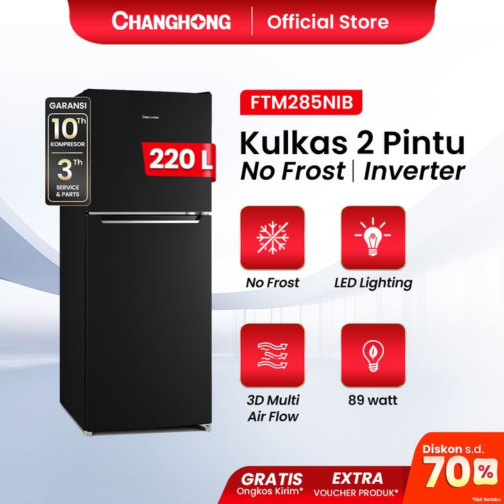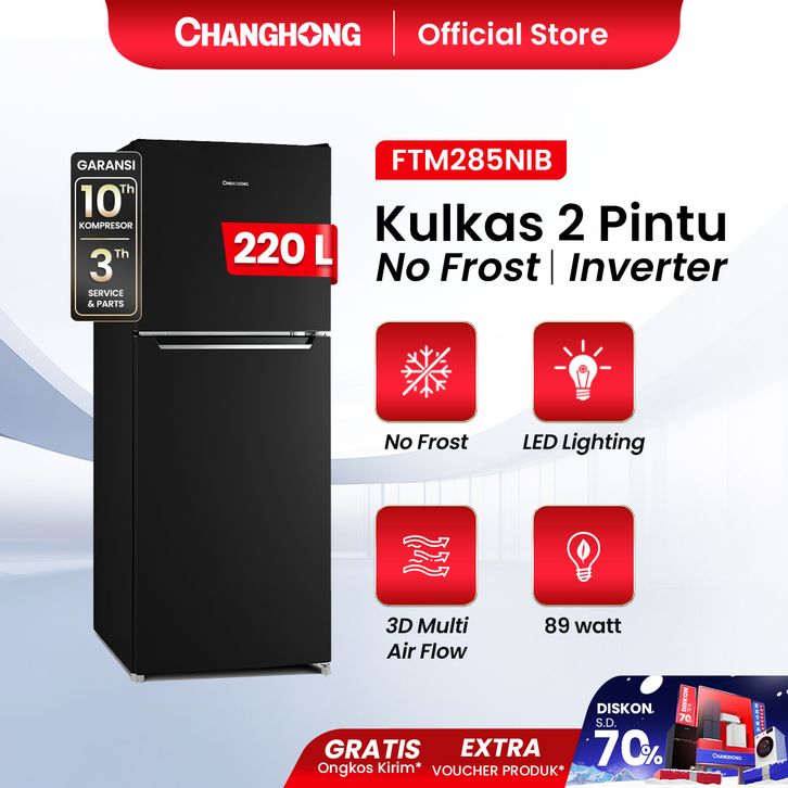 Changhong Kulkas 2 Pintu Inverter No Frost Refrigerator Kapasitas 220 Liter - FTM285NIB Black