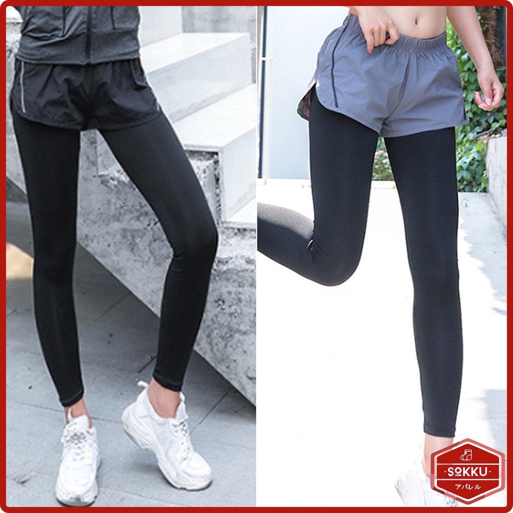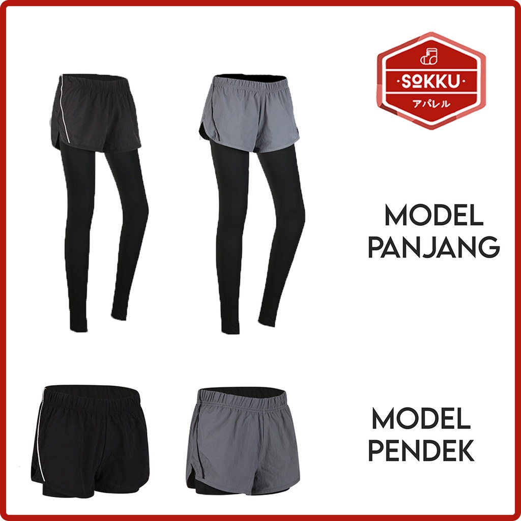 CELANA LARI SPORT PANJANG PENDEK DOUBLE LAYER PANTS OLAHRAGA WANITA.