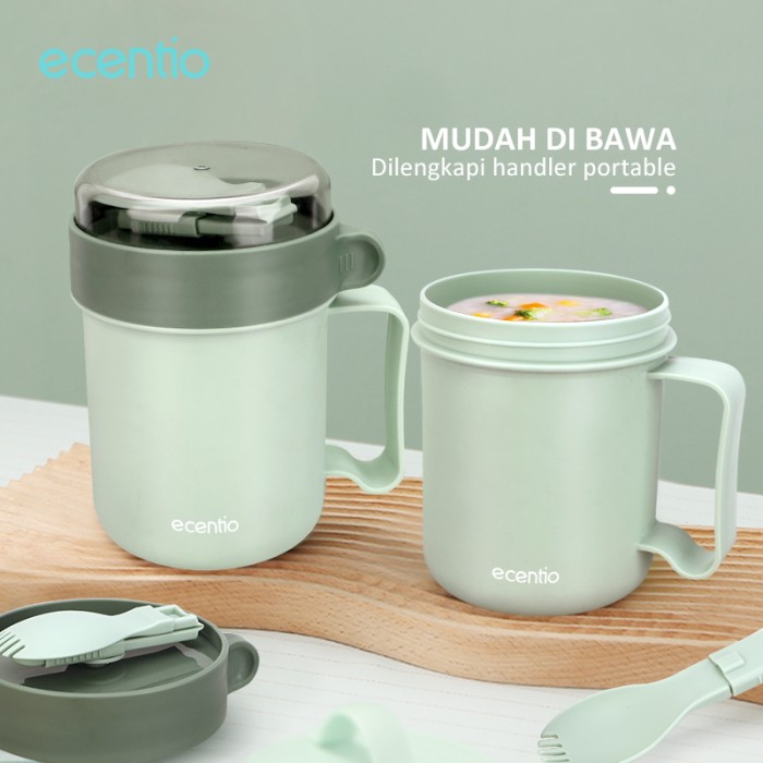 ECENTIO 500ML SOUP BOWL LEAK PROOF PORTABLE SOUP CUP FREE SENDOK