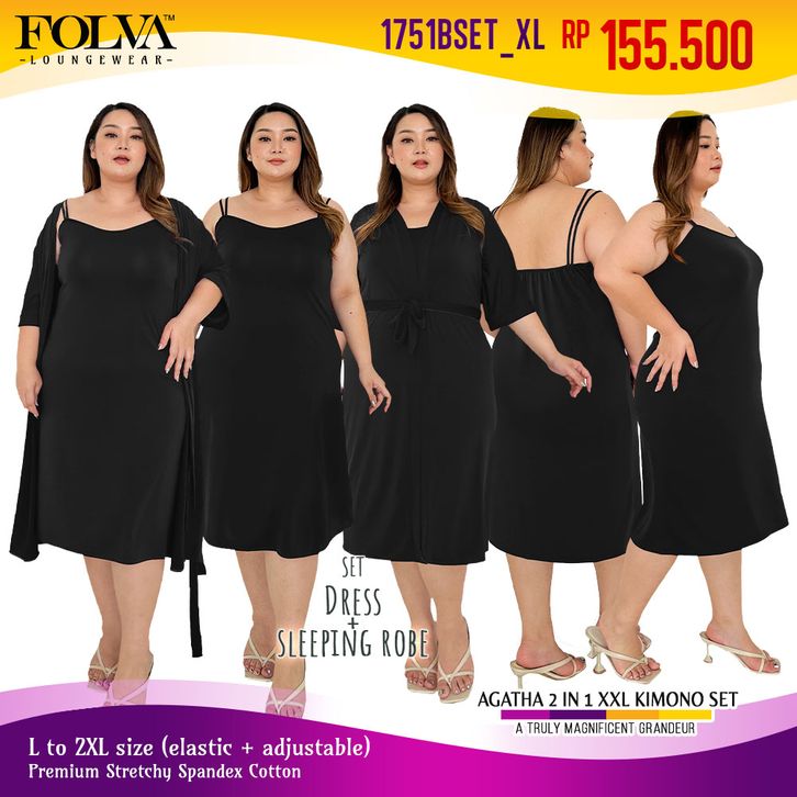 FOLVA Kimono Set Inner Tanktop Hitam Big Size Spandex 1751BSET_XL